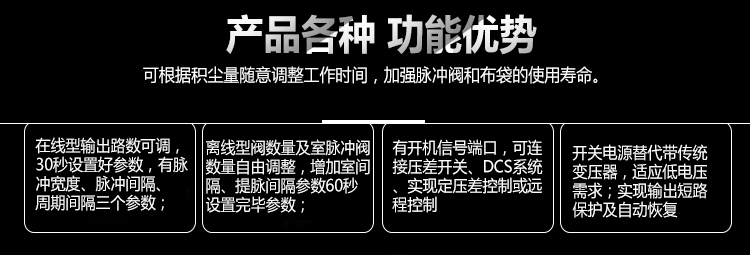 可編程脈沖控制儀是脈沖袋式除塵器噴吹清灰的主要控制裝置。它的輸出信號控制電磁脈沖閥,進而控制壓縮空去對濾袋循序噴吹清灰,使除塵器的運行阻力保持在設定范圍之內,以_除塵器的處理能力和收塵效率。